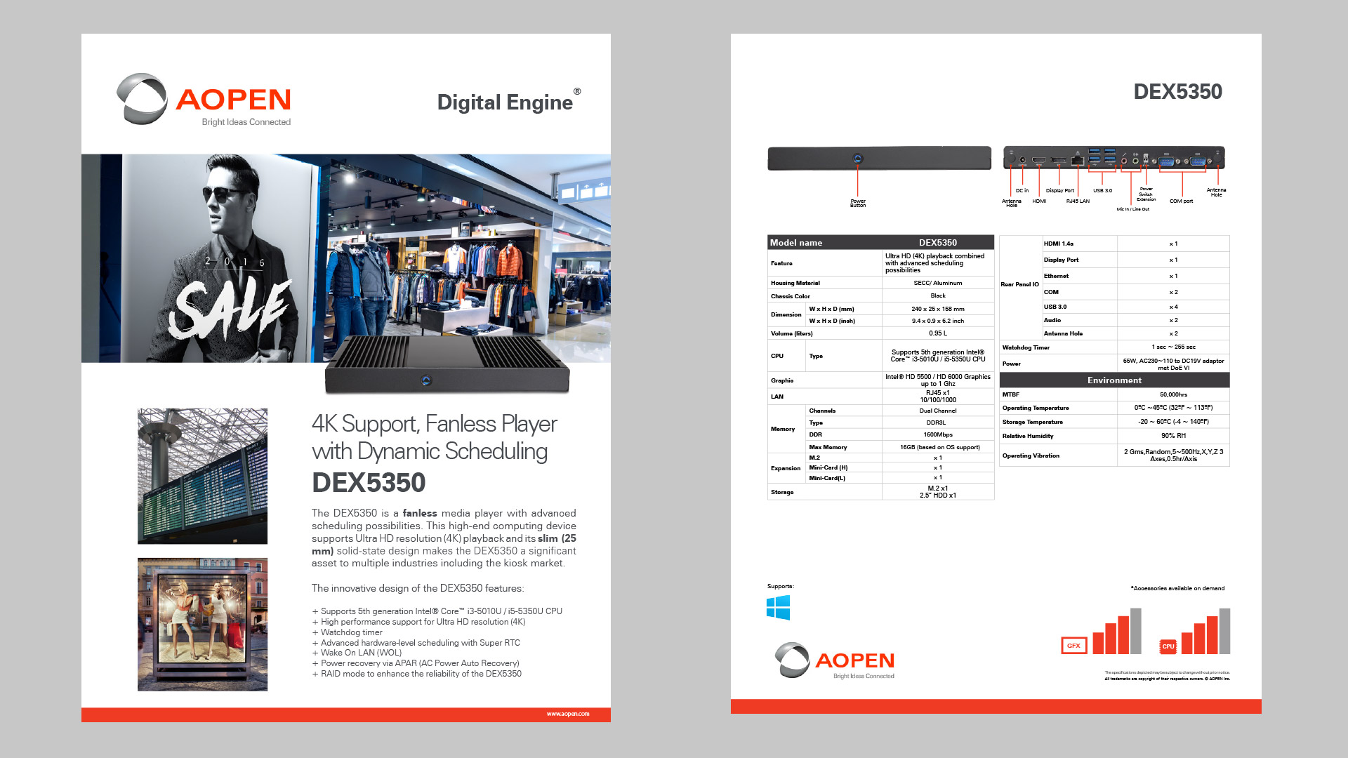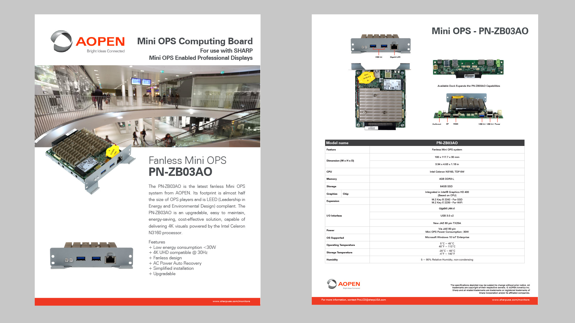 In coordination with the product marketing and sales team, these product spec sheets were designed to provide prospective customers with top level information about various hardware products. I created the scenario imagery on the front pages to illustrate sample usage, by using stock images and superimposed displays or the products.